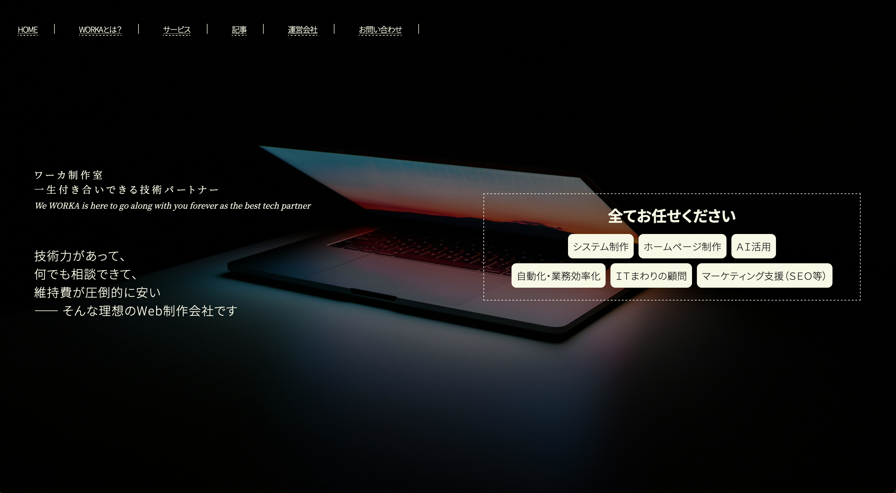 テクノロジー事業の特設ページ(『ワーカ制作室』)もあり、「どうしてウェブ制作事業をやるのか」などの話も載せています。業者選定の一助となるとさいわいです。